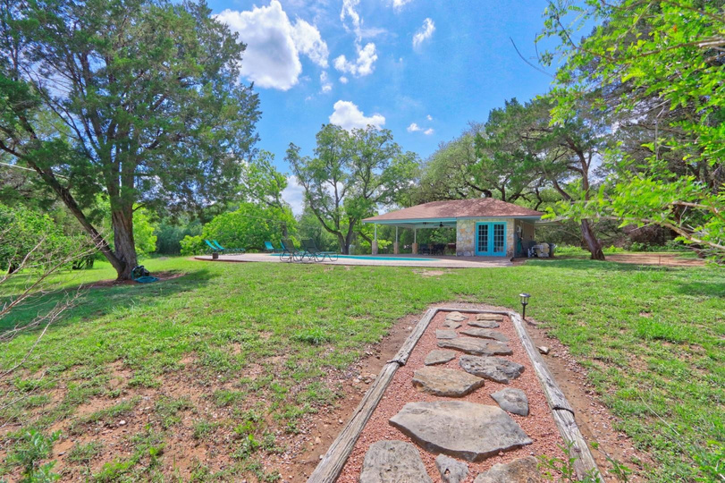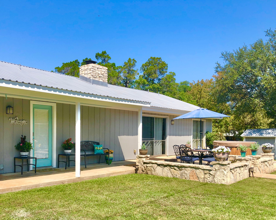 This two bedroom, one bath home is surrounded by 10 acres of nature to explore. Arbor Creek has a pool, hot tub, fire pit, and cabana for extra sleeping accommodations, and a convenient restroom next to the pool. Walking distance to the Blanco River, this property lets you truly get away from it all.